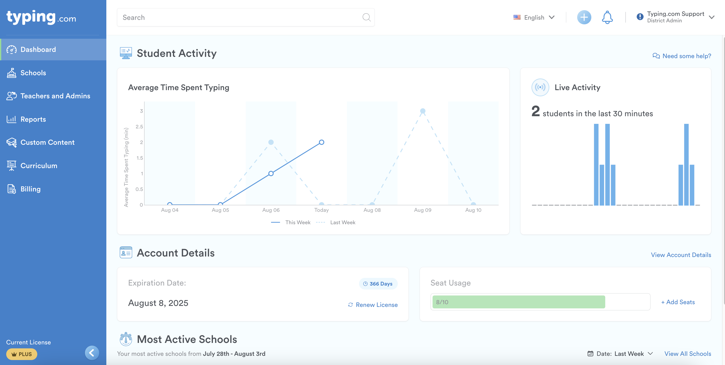 - Gain a bird's-eye view of typing activity across your entire school or district.
